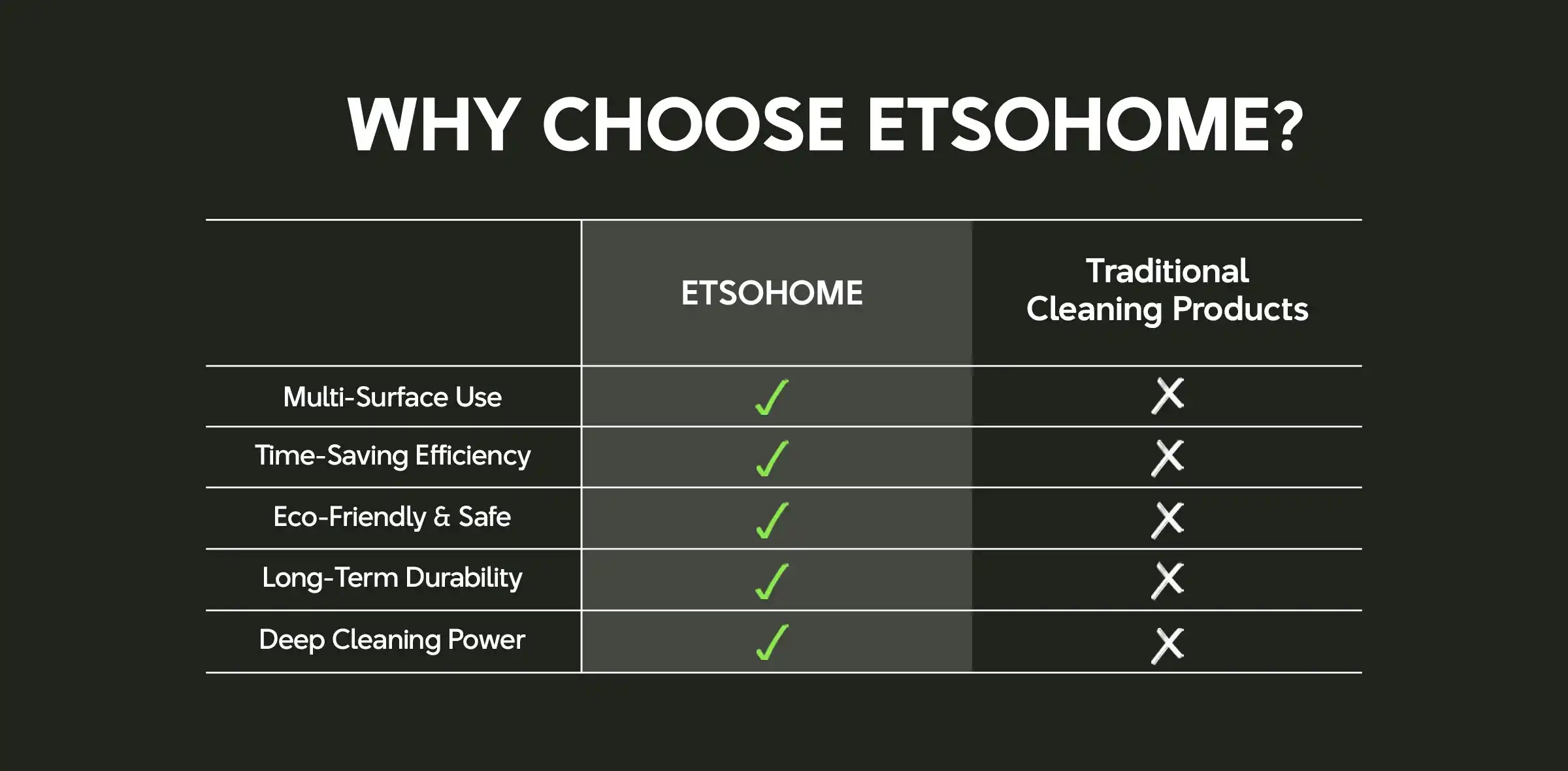 Just like a precision-crafted solution for a spotless home, every Etsohome product is designed for ultimate efficiency—making cleaning effortless and your home fresher than ever.