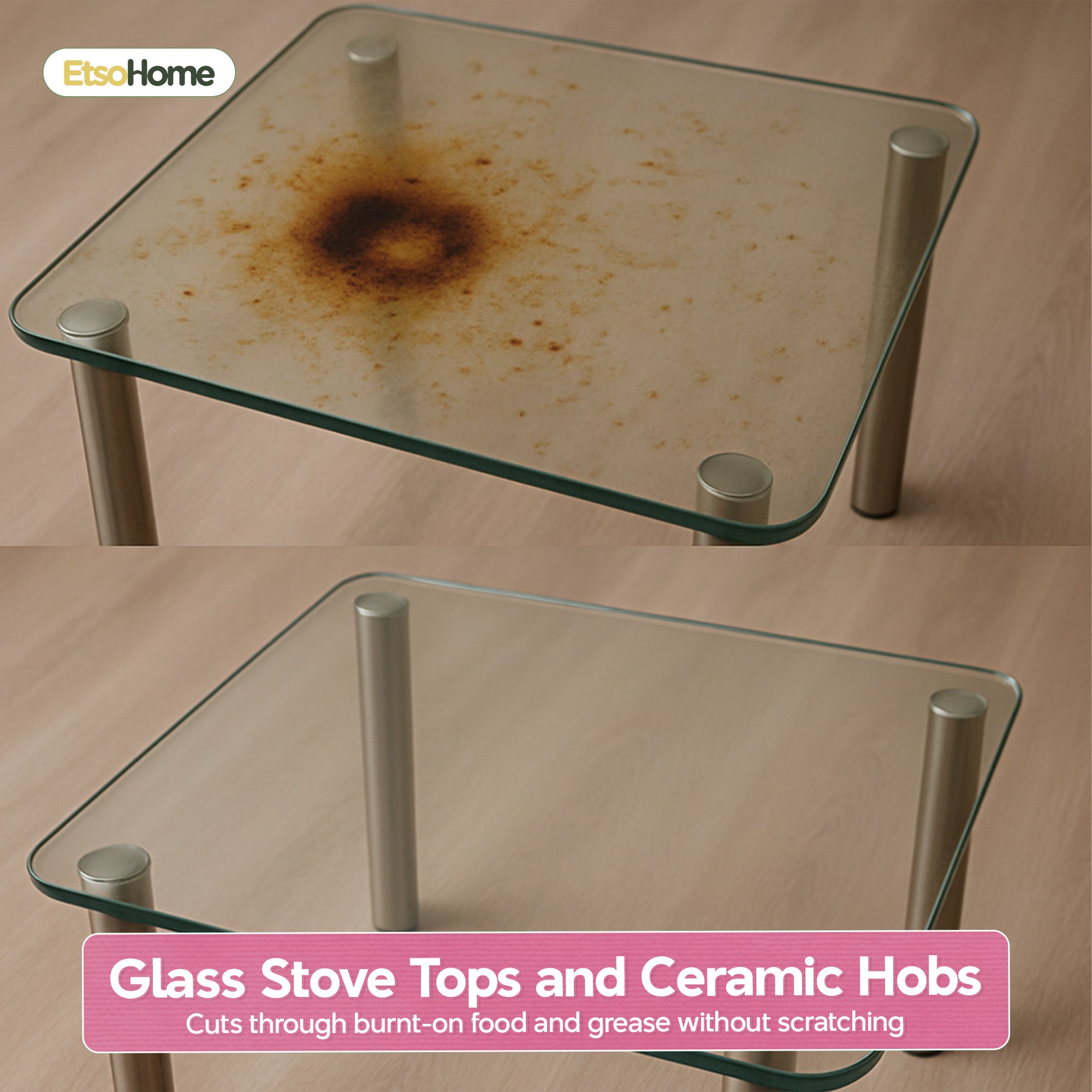 ✔️ Stovetops: Removes burned-on grease and food residue.