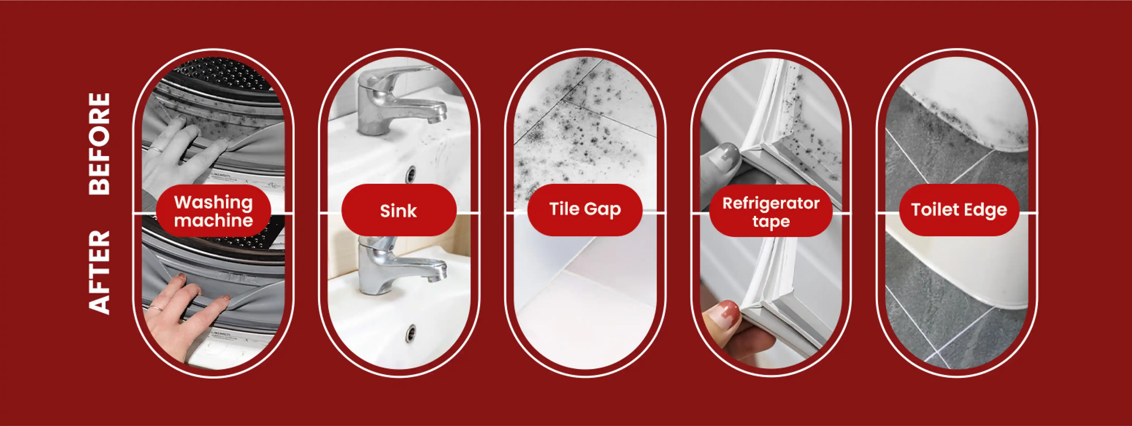 - MoldAway Gel is safe for tiles, grout, refrigerator seals, washing machines, and more. Avoid using it on fabrics, painted surfaces, or wood.