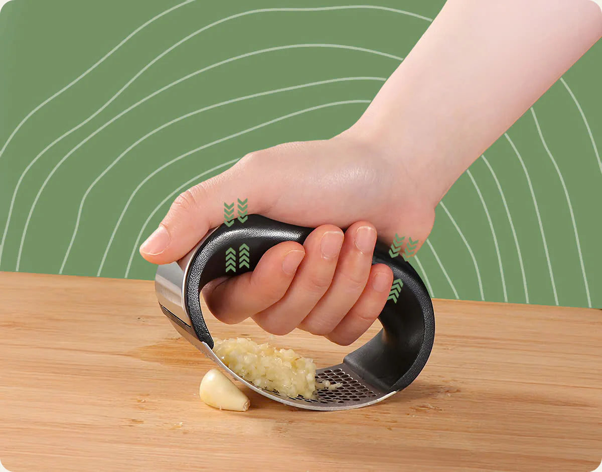 Ensuring a comfortable grip and reducing hand strain. Its sleek arc shape provides maximum leverage, making garlic crushing effortless and enjoyable
