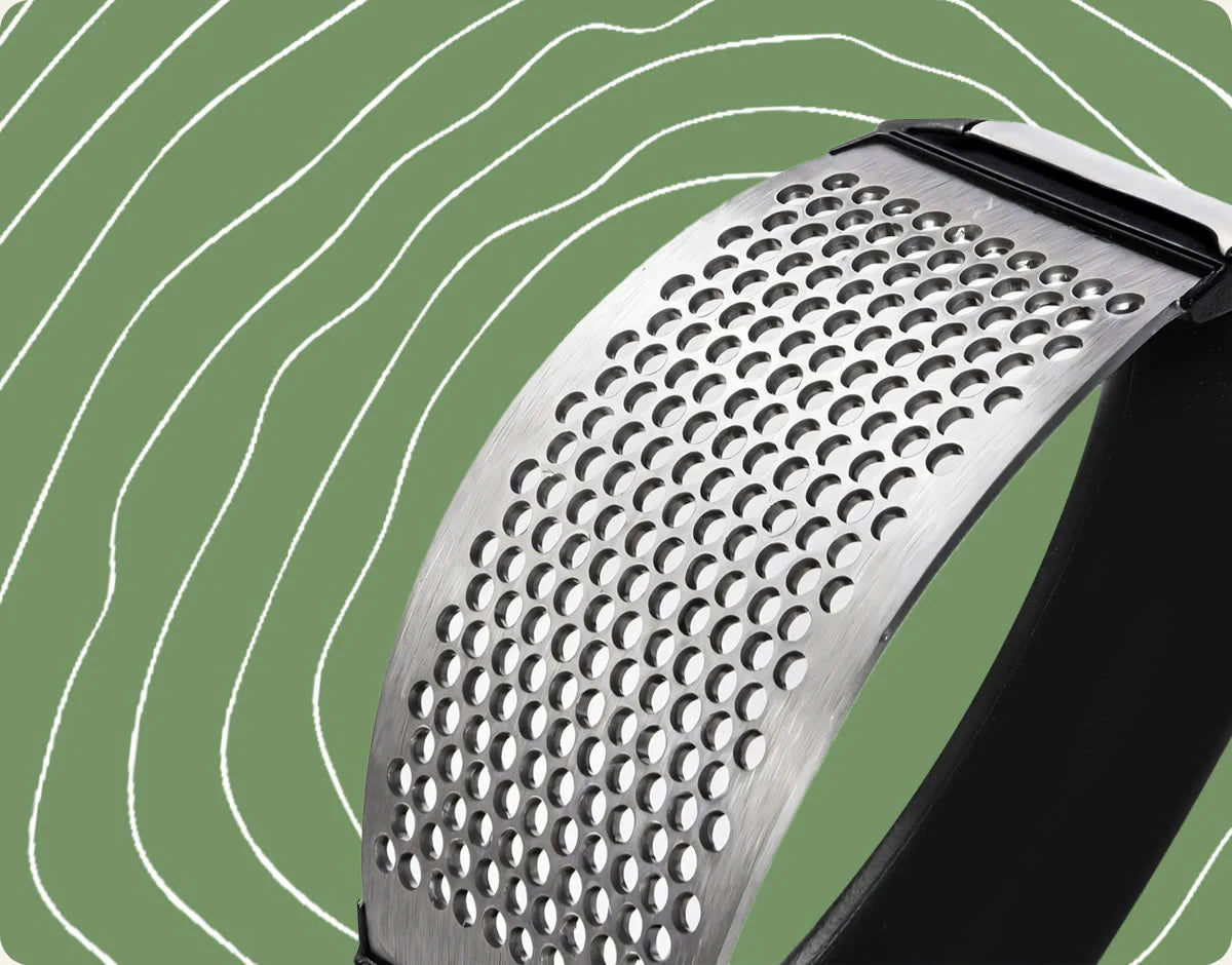 Features uniform, evenly spaced holes, expertly engineered for optimal garlic crushing, producing finely minced garlic effortlessly while maintaining durability and easy cleaning after every use