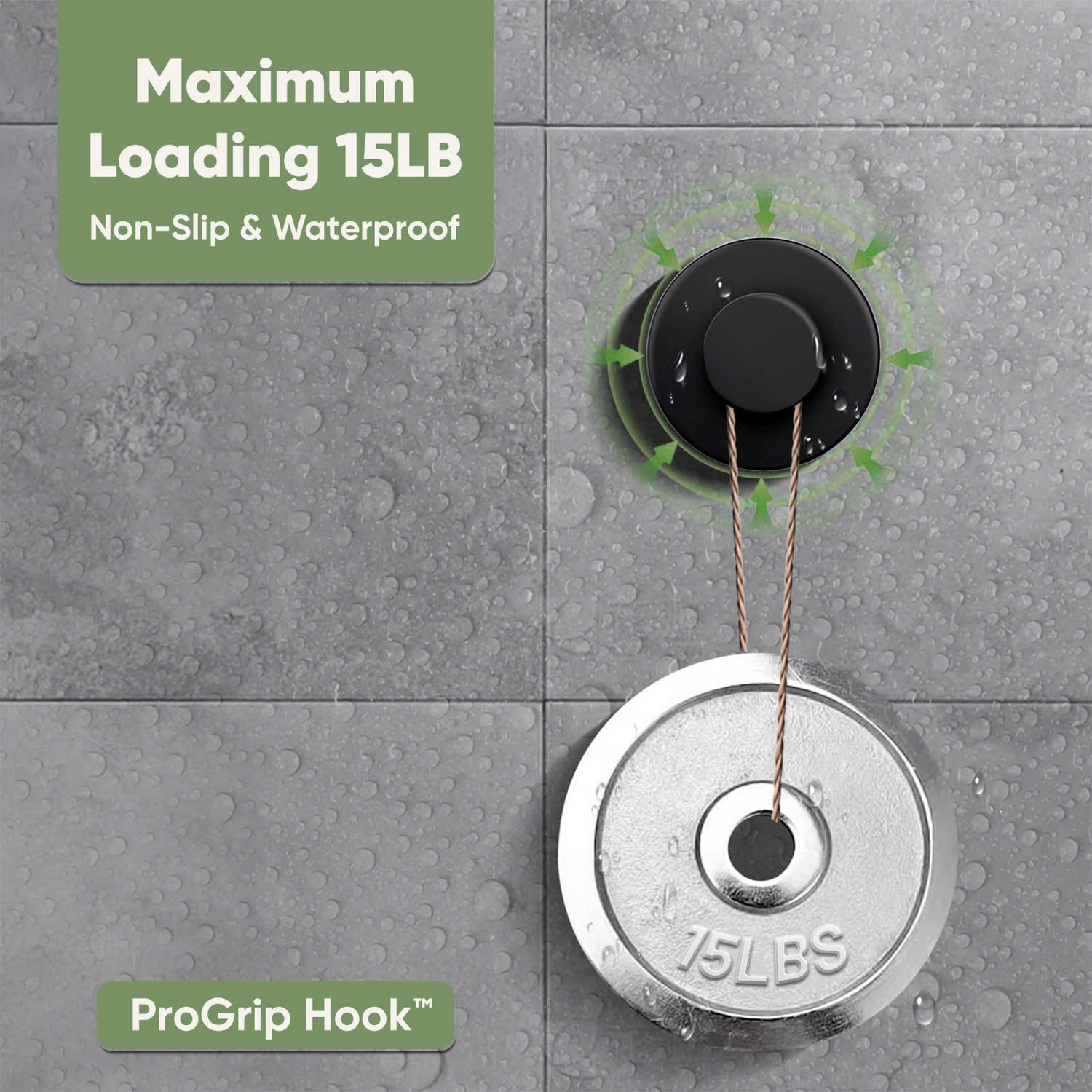 • The ProGrip Hook™ can securely hold up to 15 lbs (6.8 kg) when attached to a smooth surface.